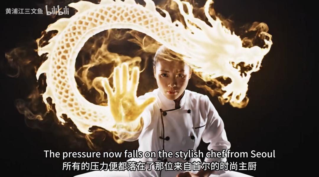 比如贯穿视频的各种热梗。首先登场的印度厨师做的“九转大肠”;中国厨师是来自上海的“辛西娅”,出场时自配背景音乐和解说,比如这句耳熟能详的“最高端的食材,往往只需要最简单的烹饪方式”……因为“三文鱼”深信“一定要有梗才能留住人”。