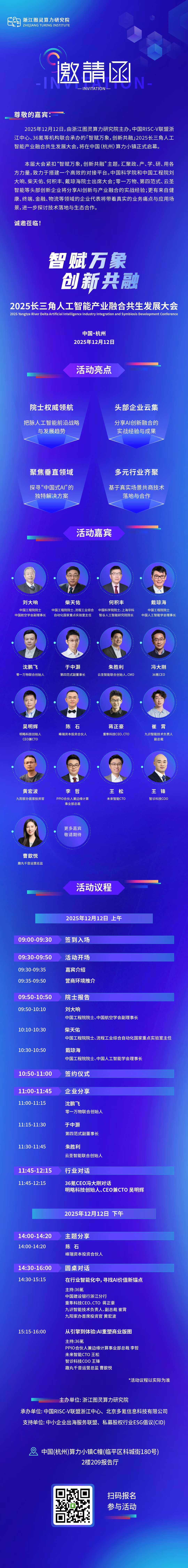 为了厘清这场变革的脉络,打破算力与应用的隔阂,2025年12月12日,由浙江图灵算力研究院主办,中国RISC-V联盟浙江中心、36氪等机构联合承办的“智赋万象,创新共融”2025长三角人工智能产业融合共生发展大会,将在中国(杭州)算力小镇正式启幕。