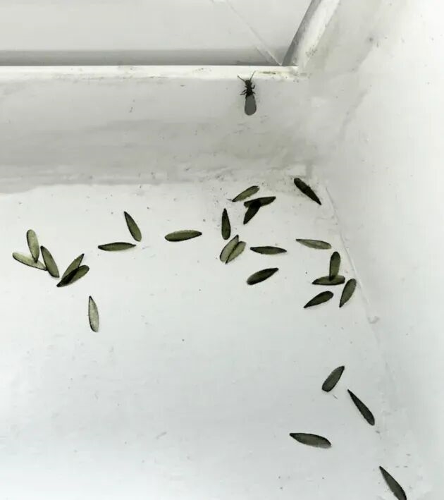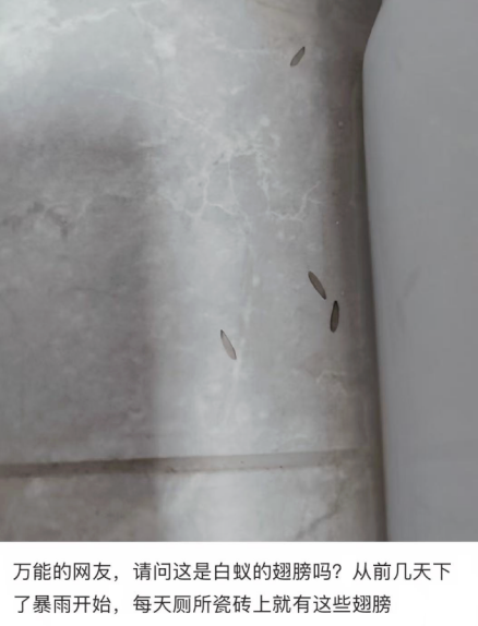 这些翅膀很可能是已经找好巢穴的白蚁脱落下来的。看到它们就有可能意味着白蚁已经在你家里安家了,但这时候它们应该还没有建立庞大的白蚁家族。