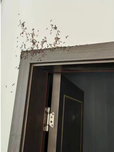 更严重的是,如果你发现婚飞的白蚁不是从外面飞进来的,而是从自己家的门框,地板里面爬出来的,那也无须怀疑,这说明白蚁在你家里已经待了相当长的时间了,你家里应该有个巨大的白蚁王国了。