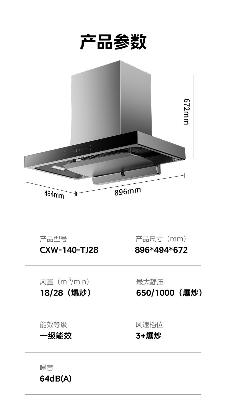 28m/min 大吸力,瞬吸浓烟不呛鼻。