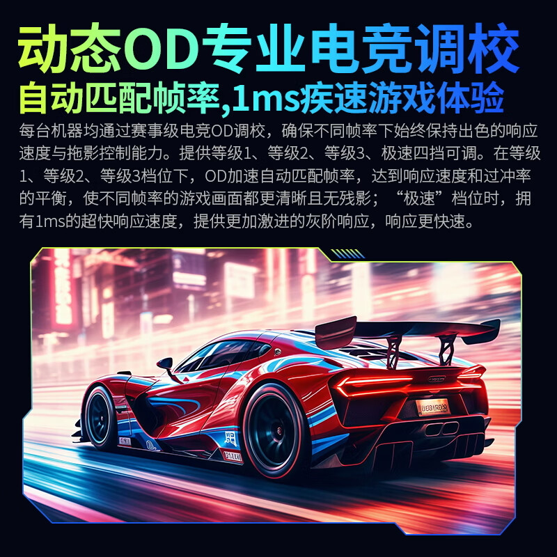 该机配备一块 2560x1440 分辨率 180Hz Fast IPS 面板,显示器亮度 350 尼特,静态对比度 1000:1,显示器支持 10-Bit 色彩(8-Bit + FRC),覆盖 95% DCI-P3、87% Adobe RGB、99% sRGB 色域。