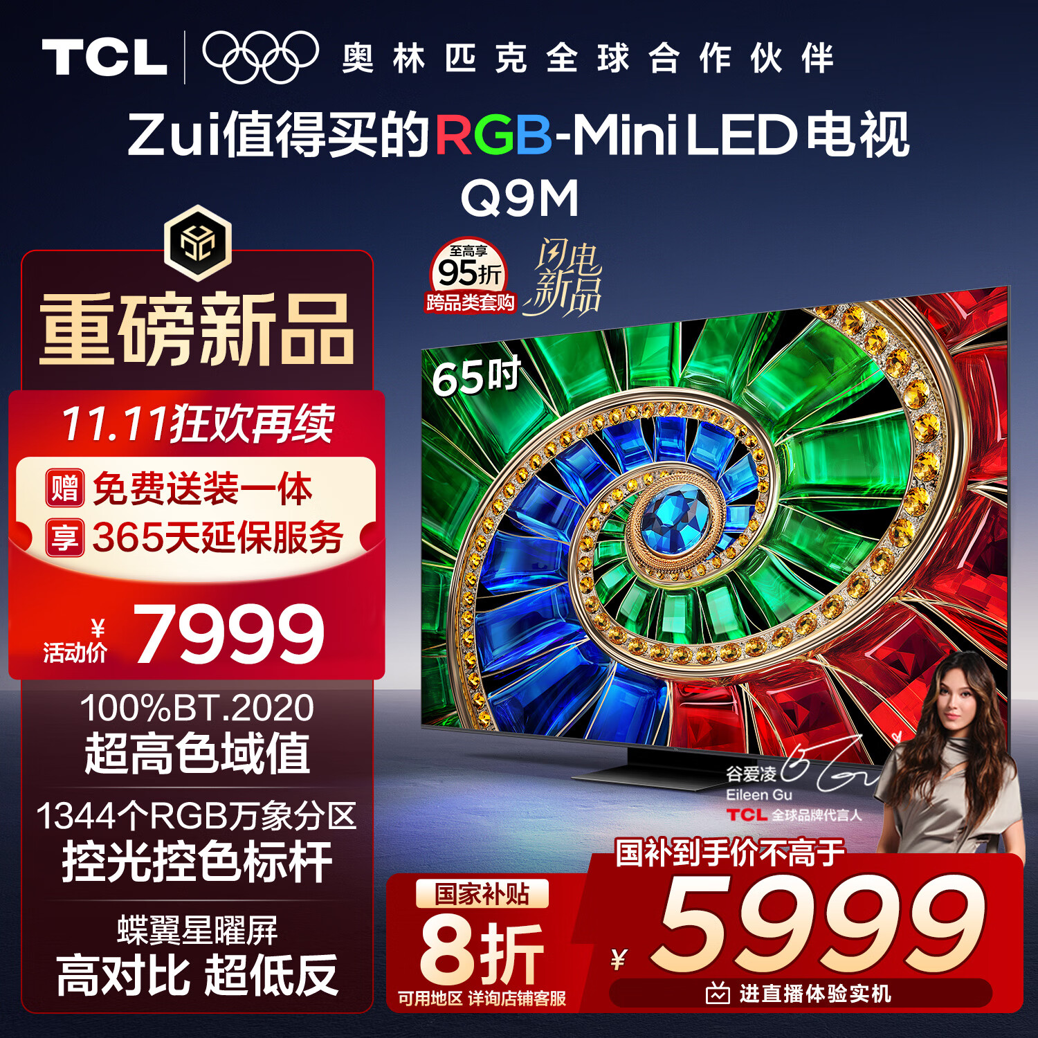 2025 年 9 月,TCL 在秋季新品发布会上,正式推出 RGB-Mini LED 电视 Q9M 系列。TCL Q9M 系列全系标配千级 RGB 万象分区(最高 2880 个分区),绚彩 XDR 最高 2000 尼特亮度,支持 100% BT.2020 色域、7000:1 原生对比度,售价 7999 元起。