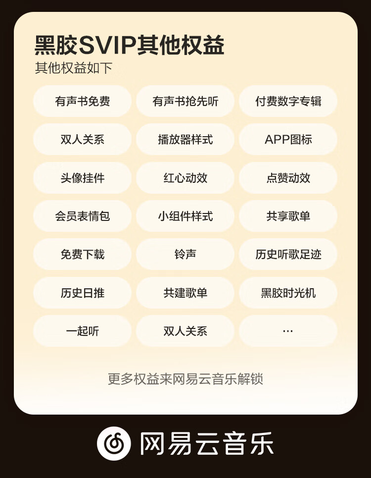 网易云音乐黑胶 SVIP 会员官方定价 480 元 / 年,连续包年 348 元 / 年。