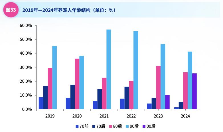 图:我国养宠人年龄结构;资料来源:毕马威,36氪