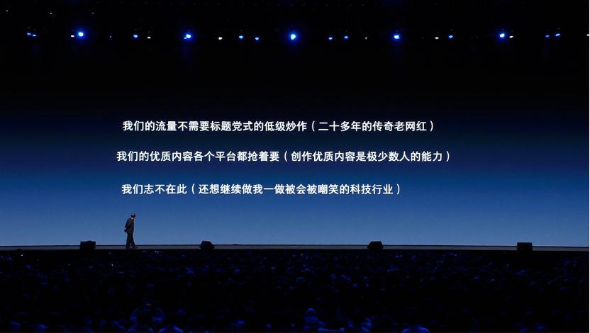 不过,期待越高,失望越大。这次演讲错误频出,除了PPT的内容不停出错之外,原定7点开始的直播最后延迟了50分钟才真正开始——中间穿插了20分钟的广告,和30分钟的“五条人”歌曲播放。