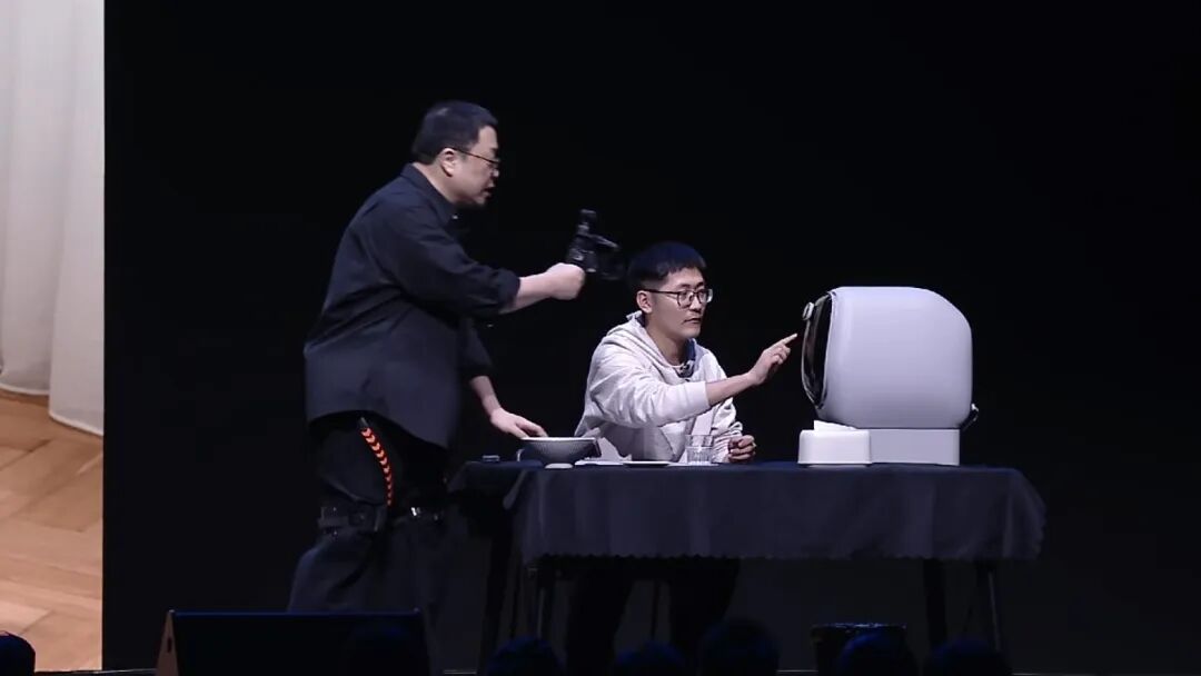 △单身汉Tim和老罗在演示5秒洗碗,图片:发布会现场